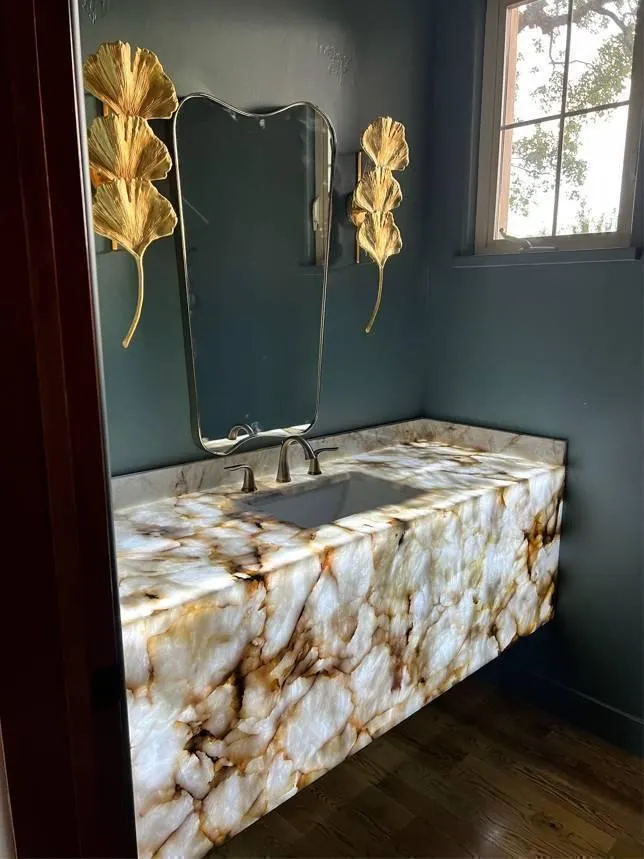 Natural vein/marking flow from countertop into backsplash for a continuous look (when stone selection allows)